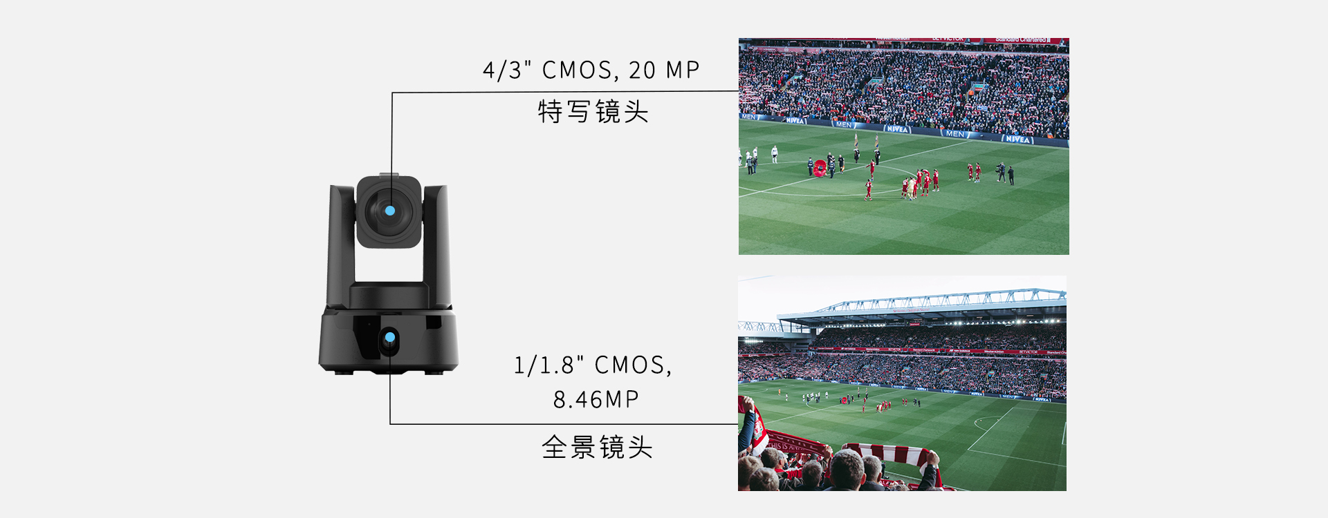 攝像機(jī)配置4/3英寸高端CMOS傳感器,呈現(xiàn)專業(yè)級(jí)的圖像細(xì)節(jié)和色彩,雙目設(shè)計(jì)可同時(shí)輸出全景和特寫4KP60雙路畫面。20倍光學(xué)變焦,最大水平視角可達(dá)71°,支持12G-SDI和3G-SDI同時(shí)輸出畫面,同步進(jìn)行視頻采集和監(jiān)看。