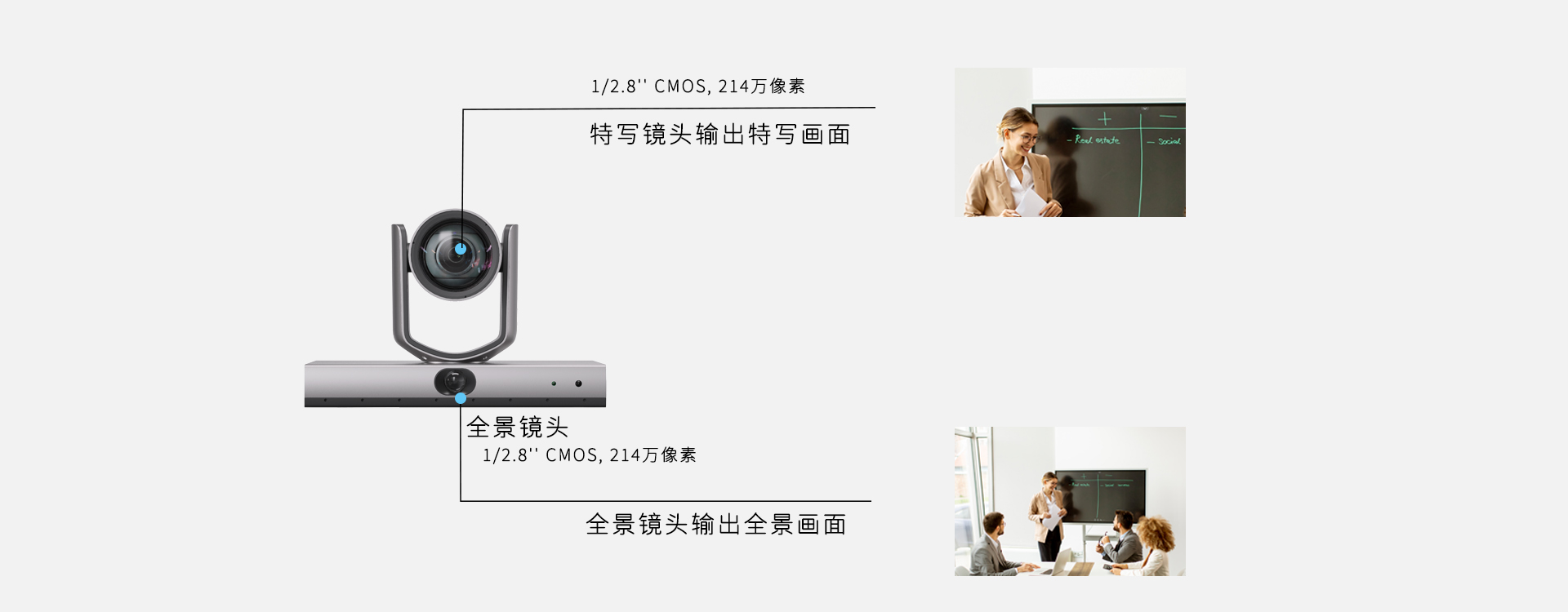 AMC系列1080P高清智能攝像機,采用語音定位技術、智能檢測與識別 AI 算法,精準定位發(fā)言者,自動、快速地給予發(fā)言者合適大小及角度的視覺呈現(xiàn);并能根據(jù)參會人員位置或者數(shù)量變化,自動調整最佳取景畫面;支持多種模式的演講者跟蹤功能,且能智能識別演講者的板書行為,并自動給予板書內(nèi)容更清晰的特寫。