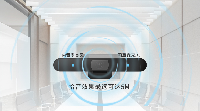 攝像機(jī)的兩邊配備了陣列麥克風(fēng),拾音距離最遠(yuǎn)可達(dá)5米
